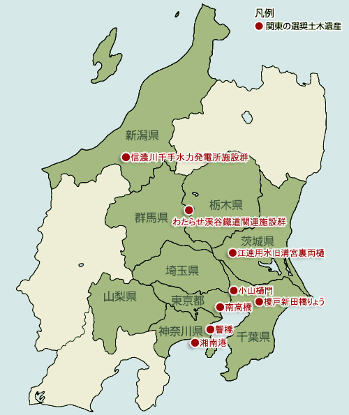 わたらせ渓谷鐵道関連施設群 響橋 江連用水旧溝宮裏両樋 南高橋 信濃川千手水力発電所施設群 小山樋門 湘南港 榎戸新田橋りょう