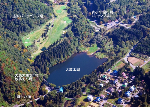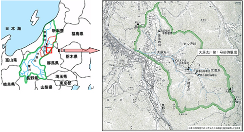 大源太川第1号砂防堰堤は、大源太川の「四十八滝」と称する地盤の強固な狭窄部に築造された、直轄砂防事業として日本で最初に完成したアーチ式砂防堰堤である。 昭和10年に魚沼地方一帯を襲った暴風雨によって引き起こされた災害を契機とし、直轄砂防事業による集中的な砂防工事が開始されたが、大源太川での対策として本堰堤が計画・施工されている。堰堤サイトの岩盤が良好であったことから、経済的に有利なアーチ式砂防堰堤を採用したものと考えられる。計画貯砂量は550,000m3にものぼり、河床堆積土砂の流出を抑え、下流の湯沢町中心部の発展に寄与している。 堤体は「粗石コンクリート構造」で構成されており、優れた技術を有する石工職人らによって築造された。本体表面の石積みとアーチ構造が織り成す景観は、現代においても朽ちることなくその美しさを保っている。 また、第2次世界大戦後、アメリカ軍が本堰堤の暗渠を閉塞し、水を貯留させてボート遊び場として利用したことから、リゾート施設としても使用され、現在は周辺のキャンプ場等観光施設と併せて、「大源太キャニオン」として親しまれている。