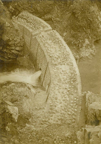 【写真−4 本堰堤施工中 高さ7m上り】 |