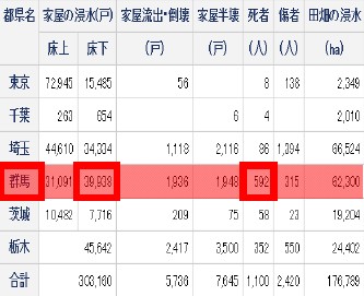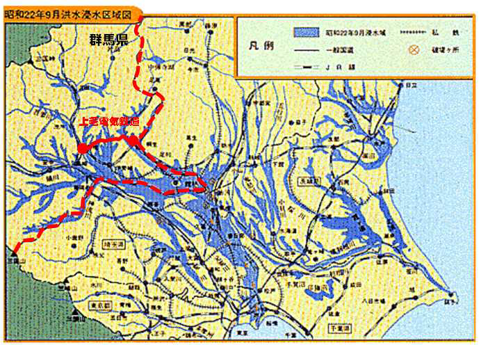 写真2 カスリーン台風の洪水浸水区域図 (国土交通省関東地方整備局HPより)