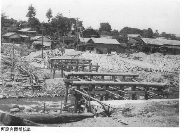 写真23 (参考)カスリーン台風被災・復旧状況写真(「大胡町水難誌」より) (直上流道路橋)仮設 宮関橋橋脚