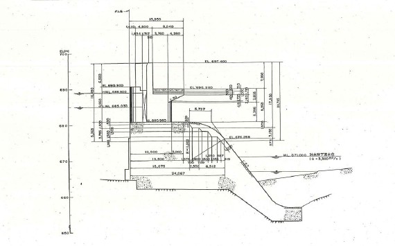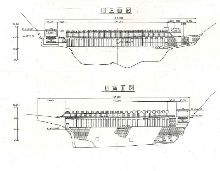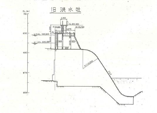 その後、施設の老朽化を踏まえ、1987(昭和62)年9月から洪水吐きを中心に大規模な改良工事が行われ、1989(平成元)年3月に現在の姿となる。主な改造は、