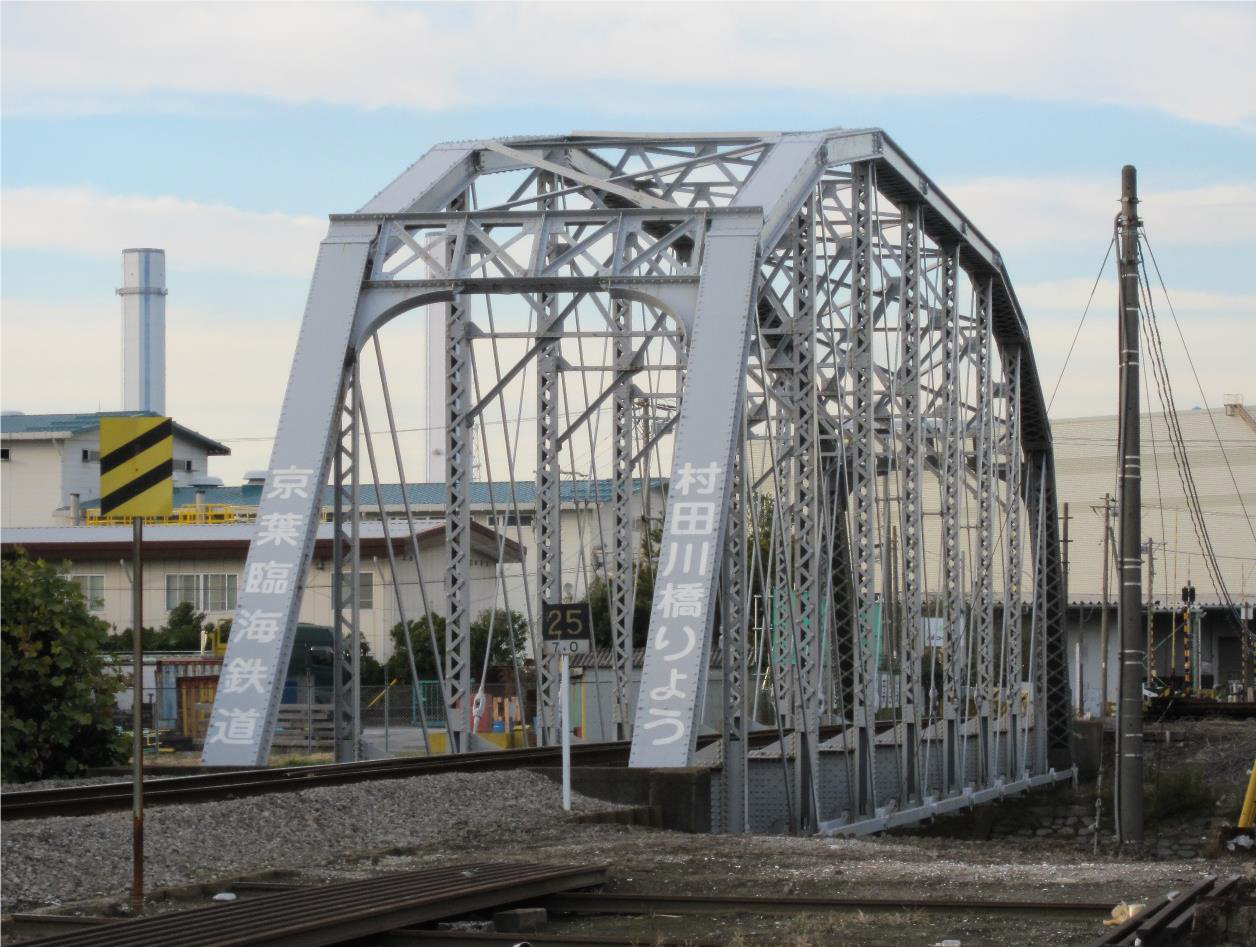 京葉臨海鉄道の千葉貨物駅〜市原分岐点間に架かる村田川橋りょうは、国鉄東海道本線の大井川橋りょうから転用された200フィートクラスのシュウェドラートラスである。