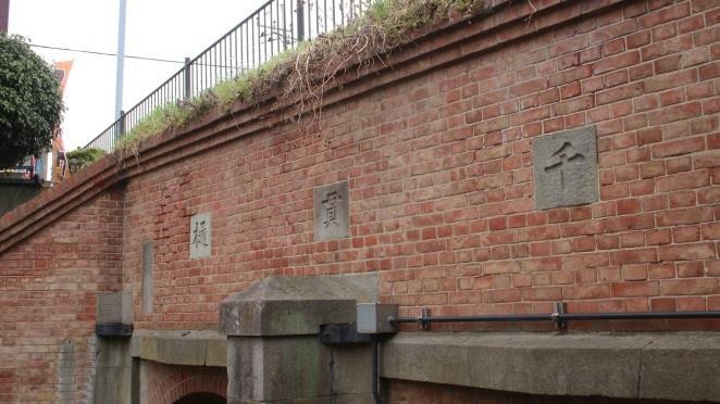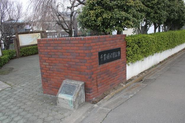 面壁に銘板石が埋め込まれている。「樋」「貫」「樋」並んで縦書きの「完成年月石」は表面が剥がされている。