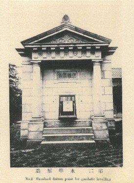 東京都千代田区にある日本水準原点は、明治24年に陸地測量部により日本の高さ(標高)の基準となる点として創設され、その原点を保護するために同時期に日本水準原点標庫が建築された。