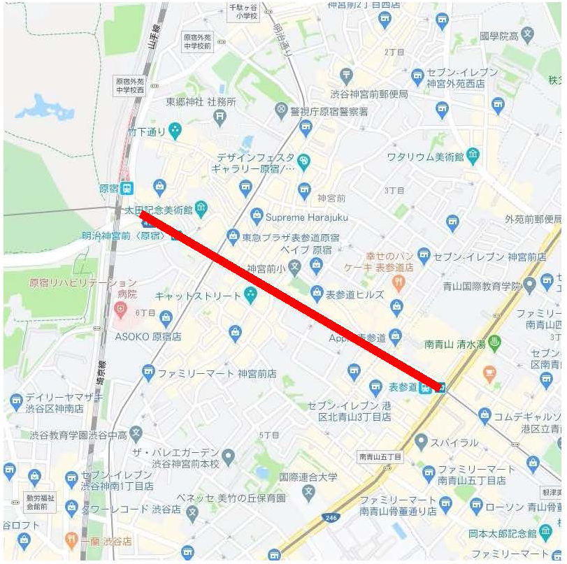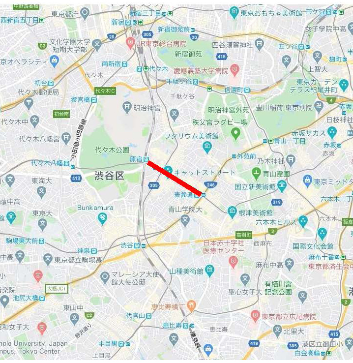 - 東京都渋谷区神宮前1丁目~港区北青山3丁目