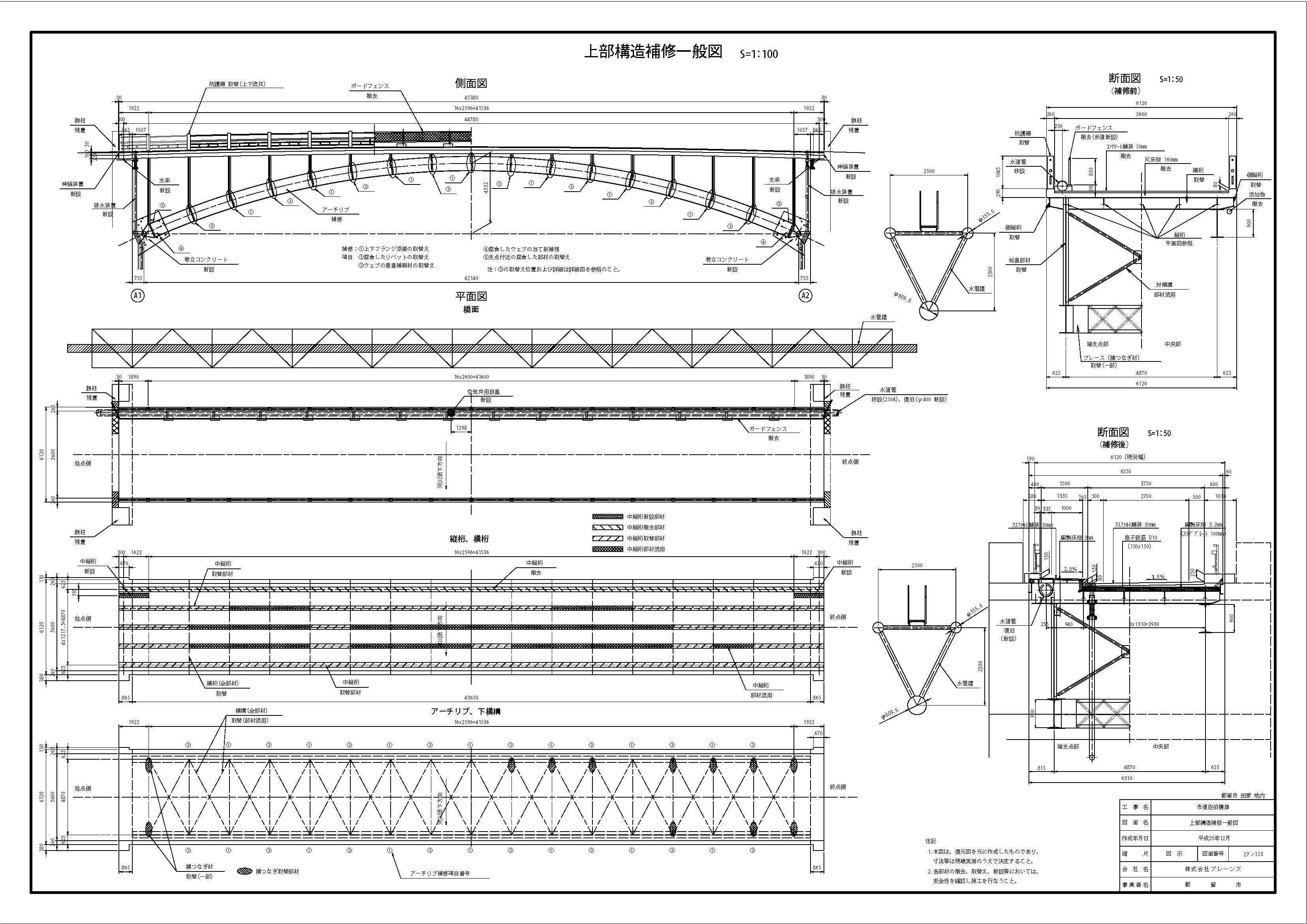 平成28年に数年かけて実施した耐震補修工事が終了し、損傷していた上路部や高欄は新しく交換されたが、アール・デコ調の親柱、上部工の補修箇所以外は建設時の材料が残っている。また補修にあたっては大戦中の供出で交換されていた高欄の柱の間隔を、上部工垂直部材の配置に合わせるといった戦前のデザインを踏襲する工夫も成されている。部材の接合は補修にあたってもリベットによる接合としている。