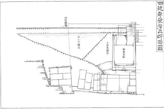 4号岸壁潜函断面図(横浜港震害復旧工事報告:昭和4年内務省横浜土木出張所)より)
