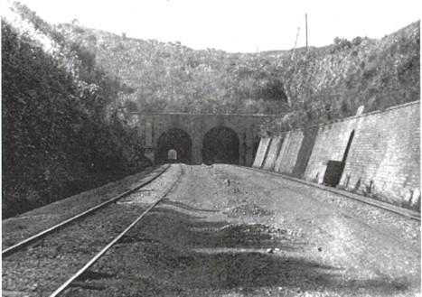 ・下りトンネルは馬蹄形 をしている。 ・アーチ部から下の側壁 部は、大正14年に煉瓦 造りからコンクリート製 に改築。