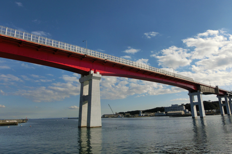 三浦半島の南端に位置する三崎と城ヶ島を結ぶ海橋である城ヶ島大橋は、三崎漁港の経済的発展及び観光など地域活性化のための輸送施設として1957(昭和32)年に建設が始まり、1960(昭和35)年に完成した。