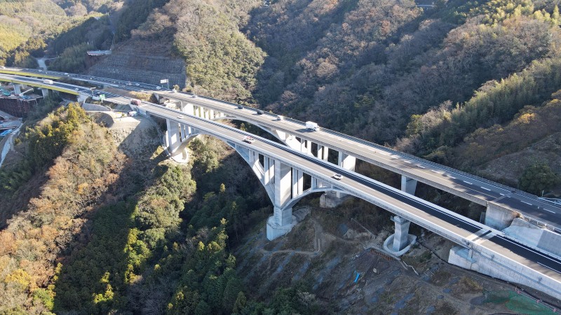 企業者: 西日本高速道路(株)四国支社 設計者: (株)エイト日本技術開発(基本),鹿島建設(株)・(株)富士ピー・エス特定建設工事共同企業体(詳細) 施工者: 鹿島建設(株)・(株)富士ピー・エス特定建設工事共同企業体 所在地: 愛媛県伊予市双海町上灘 構造形式: 【上部構造】PC4径間連続バランスドアーチ橋,【下部構造】RC柱式橋脚,逆T式橋台 橋長:232.3m