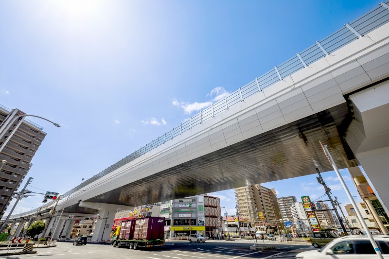 企業者: 阪神高速道路(株) 設計者: 大成・富士ピーエス・MMB異工種建設工事共同企業体 施工者: 大成・富士ピーエス・MMB異工種建設工事共同企業体 所在地: 大阪市平野区喜連西〜瓜破西付近 構造形式: 【上部構造】既設:PC3径間連続有ヒンジラーメン箱桁橋,新設:鋼3径間連続鋼床版箱桁橋,【下部構造】新設(改築):張出式橋脚(鋼・コンクリート複合橋脚) 橋長:154.0m
