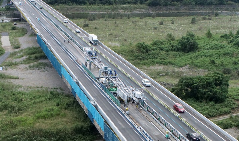 企業者: ミャンマー連邦共和国建設省橋梁局 設計者: セントラルコンサルタント(株),(株)エイト日本技術開発,(株)日本構造橋梁研究所,(株)片平エンジニアリング・インターナショナル,大日本ダイヤコンサルタント(株),TOP Engineering International 施工者: (株)安藤ハザマ・ピーエス・コンストラクション(株)JV 所在地: ミャンマー連邦共和国カレン州コーカレー郡区 構造形式: 【上部構造】:PC3径間連続波形鋼板ウェブエクストラドーズド橋,【下部構造】RC壁式橋脚(場所打ち杭) 橋長:380.0m - 出島大橋